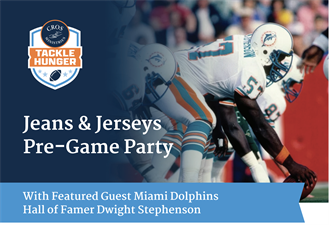 Flex your favorite team gear and mingle with football Hall of Fame legend, Dwight Stephenson, for one powerful purpose. Every dollar donated goes directly toward tackling hunger in our community.