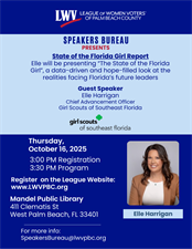 A highlight of this informative event will be a dynamic panel featuring Karen Brill, Chair of the Palm Beach County School Board; Annie McGrath, LWVPBC member, educator, Miss South Florida Fair 2025; and a Girl Scout sharing her living experience.